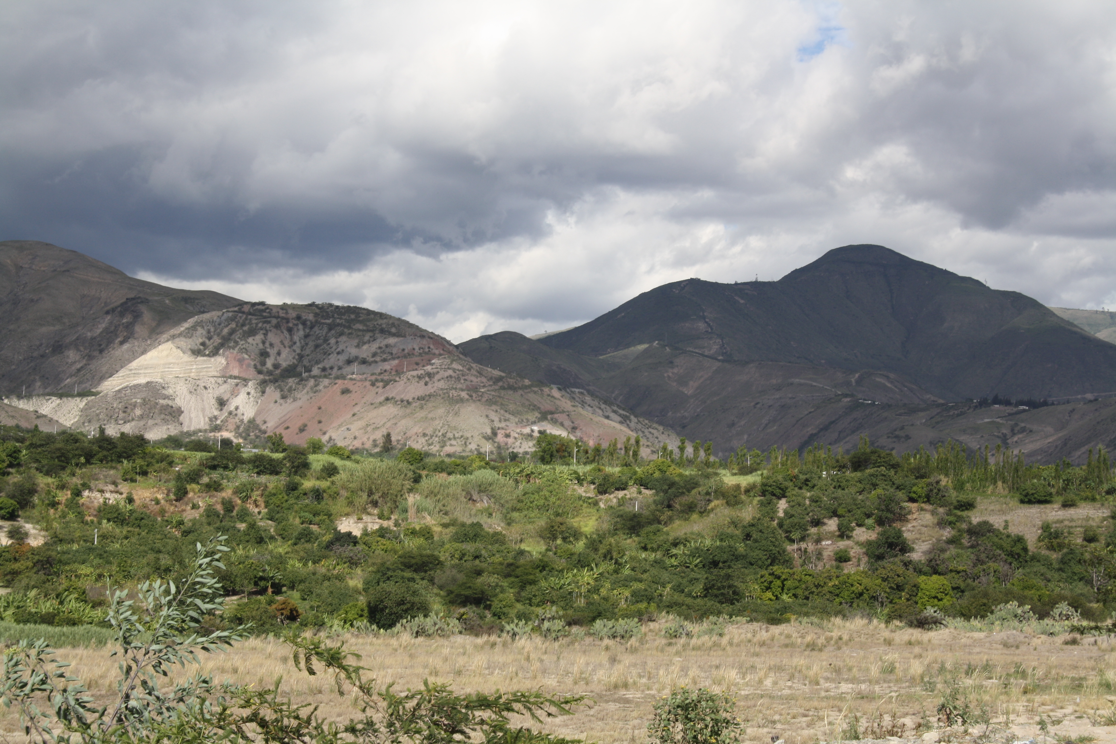 We rode hard and fast all morning trying to knock some time off what was predicted by the GPS. (I’m sick of them things always being right). At a turn in the road I stopped and waited for the others. Mark and Manny (From Canada) soon joined me but there were no sign of the other two. A half hour later a Colombian biker stopped and informed us that the other guys had broken down just outside the town we had lunch in. We turned around and headed back the forty or so km. It turned out Andre had gotten a puncture. Just as we arrived Jorgen (from Canada) also arrived from the opposite direction with Andre’s front wheel strapped to his bike. He had taken the wheel back to the town and had a new tube put in, after the guys had pinched and burst the first tube while putting it in. Andre reassembles the bike quickly and we were back on the road once again. We now however had heaps of truck to overtake.