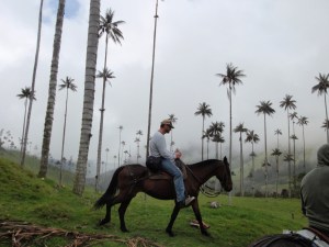 We arrived in rainy Solento after a full days ride just before dark. Solento is famous for? Being near a place called Cocora (maybe) which has giant palm trees in the Surroundings Mountains. Some of these trees are up to 60meters high. The following morning we squeezed into a tiny ww11 jeep and I mean squeezed, in fact some of us had to stand on the back for an hour and headed into the mountains. From there we rode through the trees in the rain on horseback for a while. A while too long if you ask me. I could barely walk after wards.