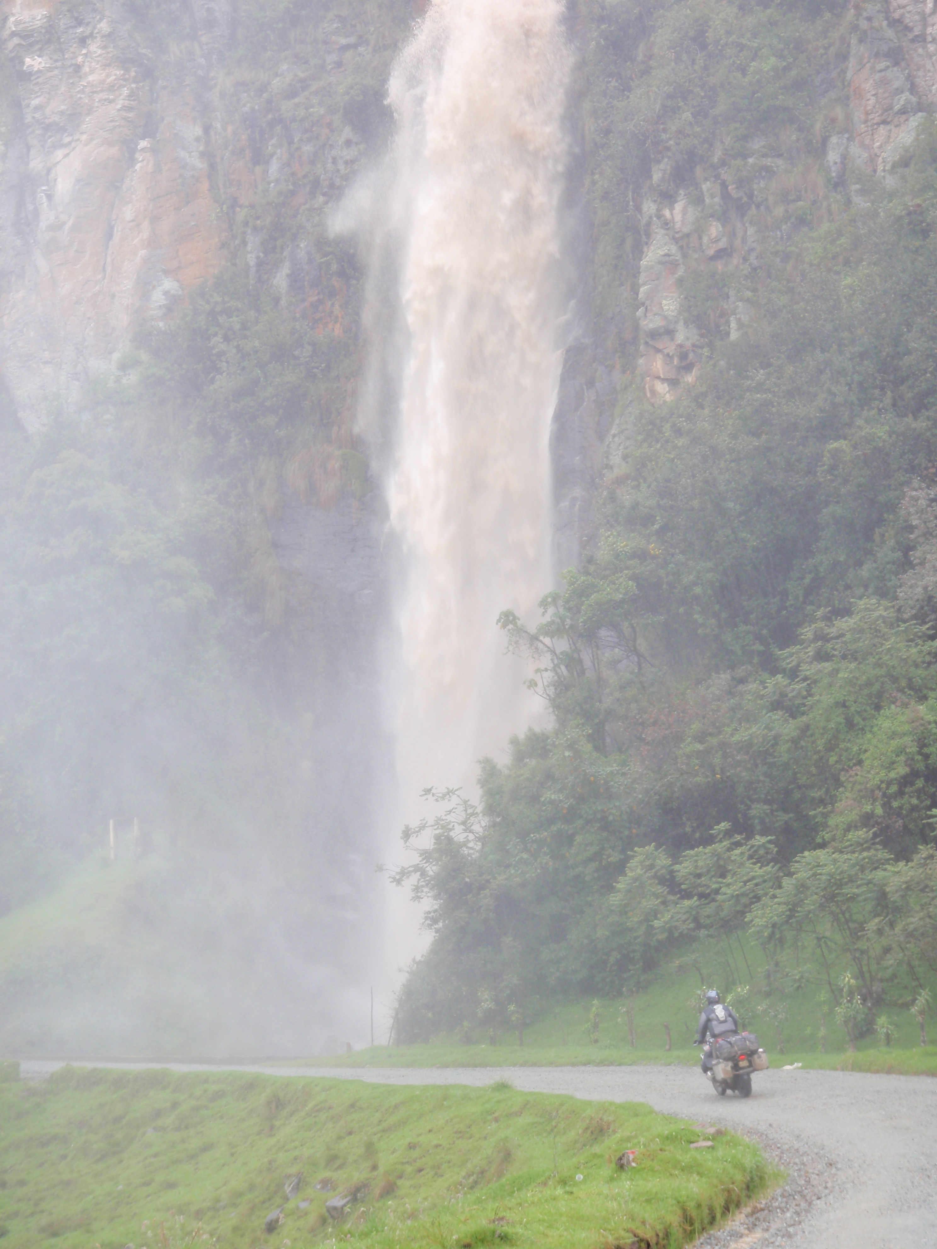 We were now in southern Colombia and on a road very few (if any) travelers take. While riding hard and enjoying every minute I had unbeknown to myself taken off way ahead of the others. As I slid round a bend in the thick dense jungle a guy in combats carrying a machine gun was standing by the road side, he looked real surprised and not too happy to see me. About 200meters down the road another guy appeared from the jungle also carrying a machine gun and wearing combats. The only difference was this guy was smiling and wearing a Metallica hat. He gave me a big wave and I gave him the devils horns salute as I passed. I didn’t think these guys belonged to the regular Colombian army and I certainly wasn’t hanging around to find out.