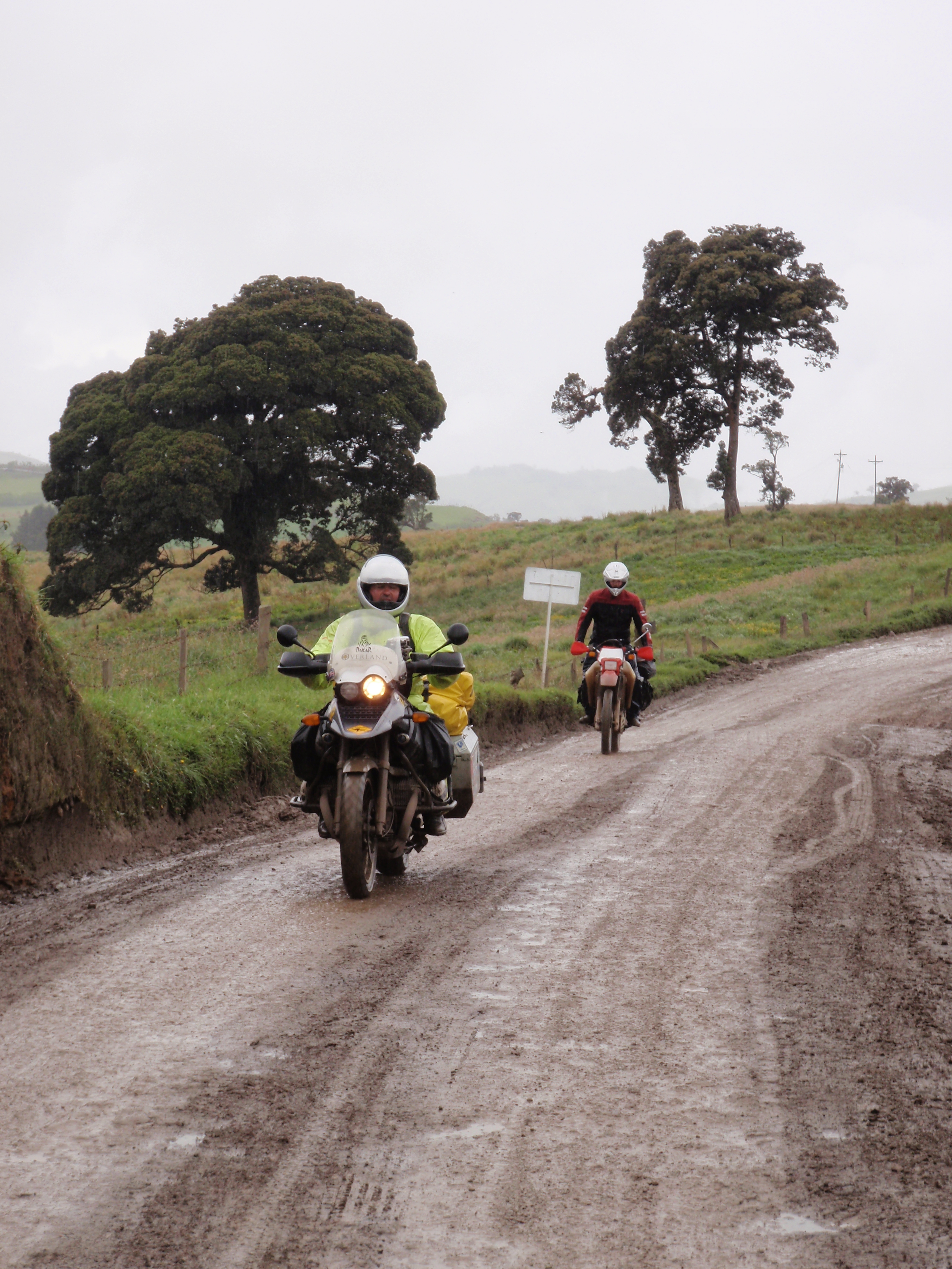 It was now getting dark and I was even more soaked and frozen. Every time I stood up on the bike the water that had been heating up in my crotch would run down my leg and quickly be replaced by freezing cold water. It was real hard to stay still on these dirt roads; there was certainly no chance of warming up whatsoever. This continued until we came to the little town of San Agustin and I was finally able to remove everything and have a hot shower. We settled in for dinner and a few beers in a guest house on the side of a mountain. Another great day in the saddle…