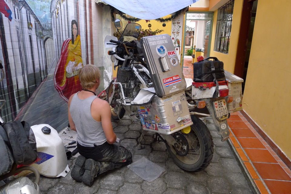 We were stopped a total of three times by the cops on route, twice only just to check our papers but the third time was because I got caught undertaking a bus. I guess they had to stop me as I did it right in front of them. They then proceeded to blabber on about something or other in some crazy language for a while. I couldn’t understand a word of it. I just kept smiling and pointing to my map bombarding them with stupid questions. I think this guy really wanted to fine me too but he couldn’t get his point across and I just kept playing dumb. When he finally asked for my passport I figured I was screwed. He took one look and called over another guy. They talked for a while but I couldn’t understand too much, I did however hear them say “Ireland”. After that they strolled over shook my hand, told me to have a nice day and said I could leave.